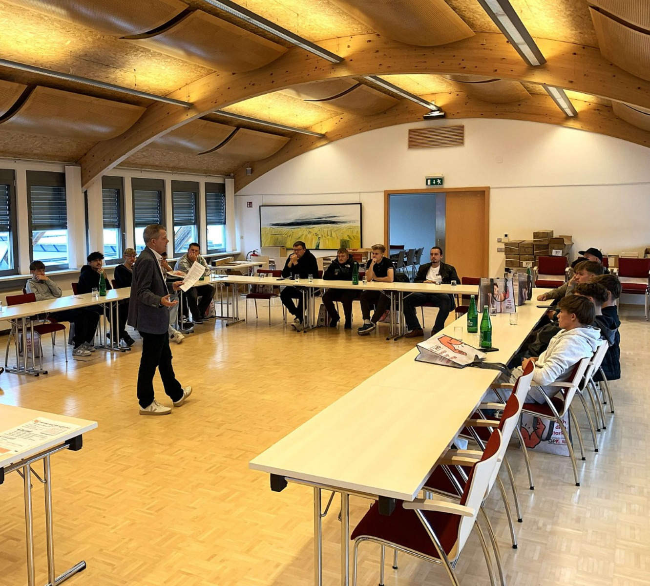Aktuell werden bei uns 15 junge Menschen zum Hochbauer ausgebildet. Drei davon absolvieren parallel eine Doppellehre im Betonbau. Beim Treffen lernen sie nicht nur die Geschäftsleitung und den Betriebsrat persönlich kennen, sondern auch einander – denn sonst sind sie auf verschiedenen Baustellen im Einsatz.
